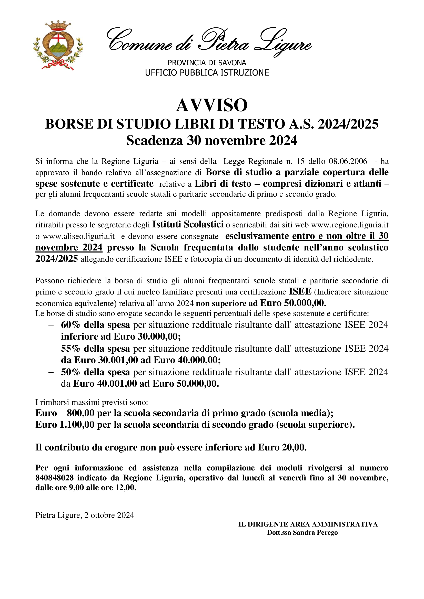 La Regione Liguria, ai sensi della Legge Regionale n. 15 dell’ 8.06.2006, ha approvato il bando relativo all’assegnazione di Borse di studio a parziale copertura delle spese sostenute e certificate relative ai libri di testo (compresi dizionari e atlanti) per gli alunni frequentanti scuole statali e paritarie secondarie di primo e secondo grado.