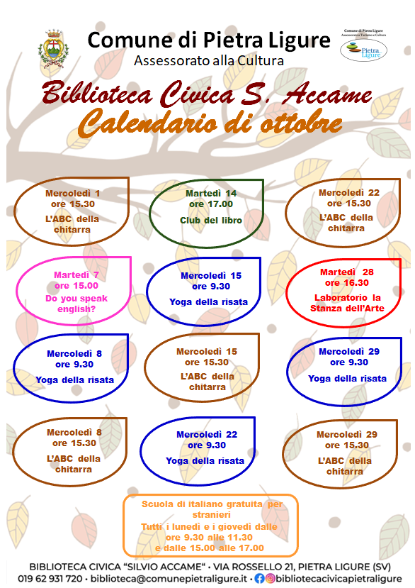 Calendario di Ottobre degli incontri in Biblioteca
