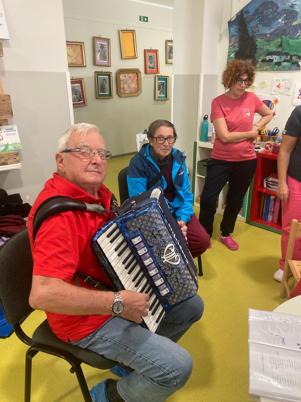 Il 23 Ottobre abbiamo ospitato anche i volontari dell’ Associazione Auser che hanno aiutato nonni e bambini a realizzare le mascherine di Halloween rallegrando il pomeriggio con il suono della fisarmonica.