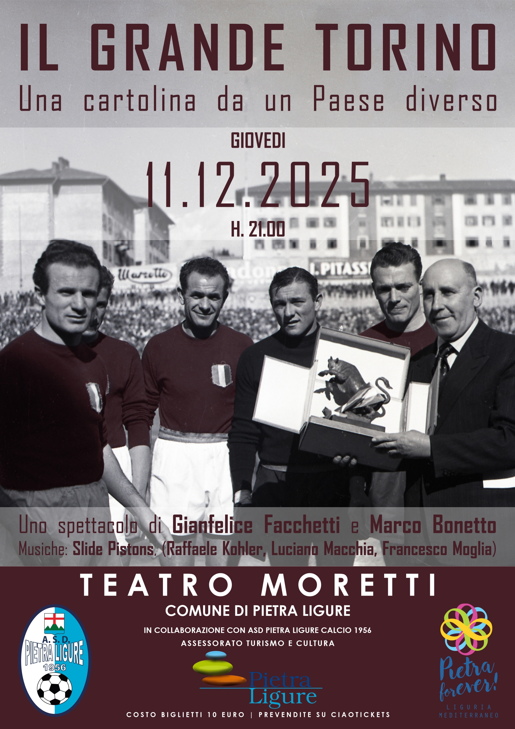 Gianfelice Facchetti, figlio del grande campione, insieme a Marco Bonetto porterà sul palco del Teatro G. Moretti giovedì 11 dicembre 2025 alle ore 21.00 lo spettacolo Il Grande Torino.