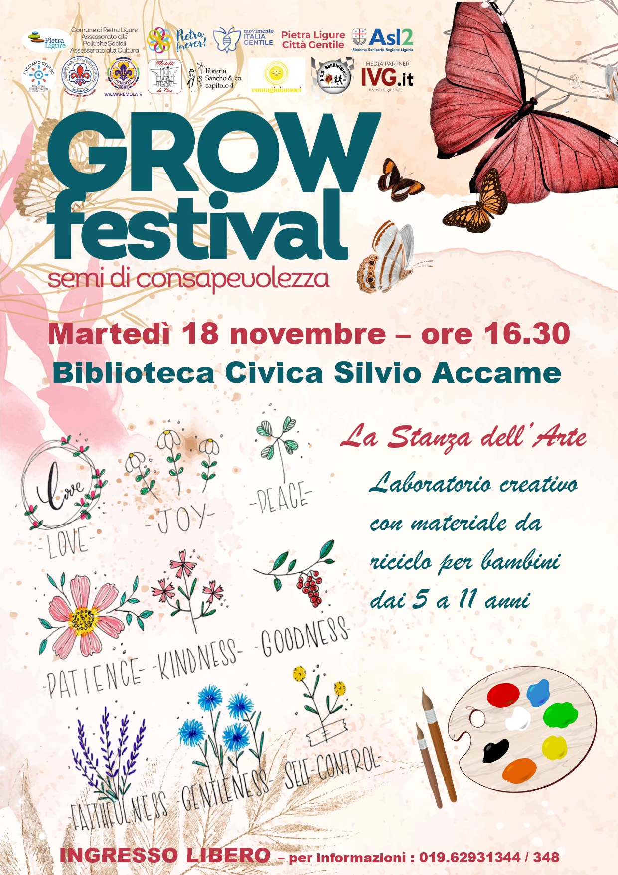 All’interno del Grow Festival la Biblioteca Civica riaprirà la Stanza dell’Arte martedì 18 novembre alle ore 16.30 per un laboratorio dedicato al Grow Festival, utilizzando materiale da riciclo.